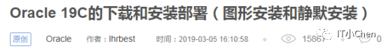 那是2019年2月14日,Oracle刚刚发布19C,看到了盖国强老师的文章,可以在Oracle CLOUD上下载19C的安装介质,于是迫不及待的马上下载安装测试,并把测试过程 发布到了我的ITPUB博客里。
