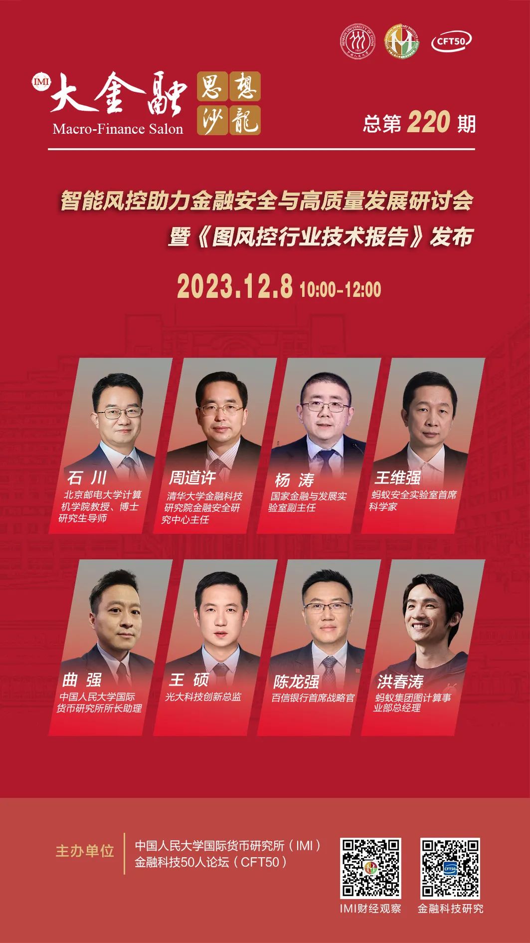 为深入讨论相关主题,中国人民大学国际货币研究所(IMI)与金融科技50人论坛(CFT50)联合邀请各方面的专家学者相约大金融思想沙龙(总第220期)展开研讨,集思广益。同时发布《图风控行业技术报告》白皮书,研究显示在新型的数字风险态势下,图风控在智能风控领域发挥着越来越重要的作用。
