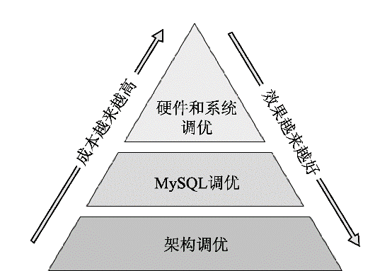 按照依赖关系(架构调优要求DBA对MySQL本身有一定的了解,MySQL调优依赖于系统和硬件的相关知识)和对专业知识要求的难易程度,我们按照自上而下的顺序(硬件和系统调优、MySQL调优、架构调优)描述案例,而DBA在实际应用过程中接触和优化的顺序其实是相反的。在进行优化时,首先需要关注和优化的应该是架构,如果架构不合理,那么DBA能做的事情其实是比较有限的。