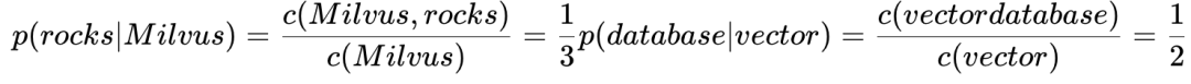 这表明“database”这个词将以 90% 的概率跟在“Milvus vector”这两个 Token 之后。同样,我们可以写成: