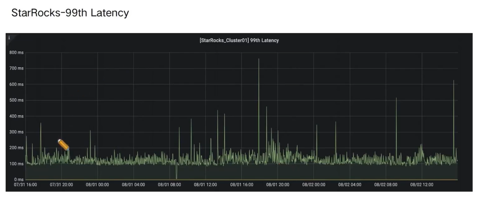 StarRocks 可以很便利地通过多机多核的方式提高并发能力,而 ClickHouse 的并发能力相对较弱,默认的 QPS 大约为100;