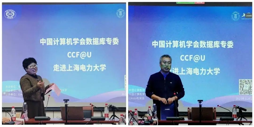 学习 探索 分享数据库前沿知识和技术 共建数据库技术交流圈2023年11月26日上午,由中国计算机学会(CCF)主办,CCF数据库专委会与上海电力大学承办,Gauss松鼠会协办的“CCF走进上海电力大学活动—数据驱动的安全与智能应用”,在上海电力大学临港校区学术楼会议室301成功举办。本次报告分别邀请到北京大学王选计算机研究所邹磊教授、华东师范大学王晓玲教授和华东师范大学金澈清教授进行报告分享。会议由CCF数据库专委会秘书长、中国人民大学教授陈跃国主持。本次活动以线下会场和线上Gauss松鼠会B站直播的形式开展,会议汇聚了来自中国人民大学、北京大学、上海交通大学、复旦大学、华东师范大学等兄弟院校以及本校计算机科学与技术学院师生,有80余人线下和188人线上参加。活动伊始,上海电力大学大数据安全与智能应用团队负责人田秀霞教授致欢迎词,对三位演讲嘉宾、报告主持人、学院领导、同事、同学们参加CCF走进上海电力大学活动致以热烈的欢迎和衷心的感谢。然后由CCF数据库专委会秘书长陈跃国教授针对此次活动致辞,向大家介绍了CCF与CCF数据库专委的发展历程以及取得成就,欢迎广大师生加入CCF,和各位专家及同行互相交流、活跃学术思想,并预祝本次CCF走进高校活动取得圆满成功。