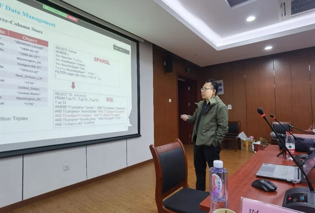 北京大学王选计算机研究所邹磊教授作题为《原生图数据库系统中的查询处理与优化》报告。首先介绍gStore系统中所提出的基于子图匹配的查询引擎设计理念,从关系数据库和图数据库分别以隐式和显式表示实体之间的关系的角度,引入图数据库。然后邹磊教授介绍了分布式gStore系统的设计,包括分布式图查询的框架以及优化的分布式图数据的划分策略。最后邹磊教授还介绍了团队近期在硬件加速的图查询引擎方面的工作,并且对分布式gStore系统未来相关技术研究进行了展望总结。报告过后,邹磊教授针对现场高校师生提出的多个问题做了耐心细致的解答。邹磊教授作题为《原生图数据库系统中的查询处理与优化》报告华东师范大学王晓玲教授作了题为《融合多模态知识的中医数据分析技术》报告。中医是中华民族的宝贵财富,中医处方数据中蕴含着“辩证论证”的诊疗思想、多模态的领域知识。王晓玲教授汇报了覆盖中医多模态数据的中西医知识图谱的构建,介绍了基于主题模型、基于图神经网络模型、基于图注意力网络的知识增强以及基于对比学习增强等分析技术,探索了可解释的数据分析方法。基于学术研究成果,构建了一个创新的中医传承辅助平台,实现了药方分析、药理分析、核心方分析、基于大模型的智能问答等功能,为中医传承提供了数据支撑和技术辅助。最后王教授与师生针对该领域未来研究方向进行了深刻的互动交流。