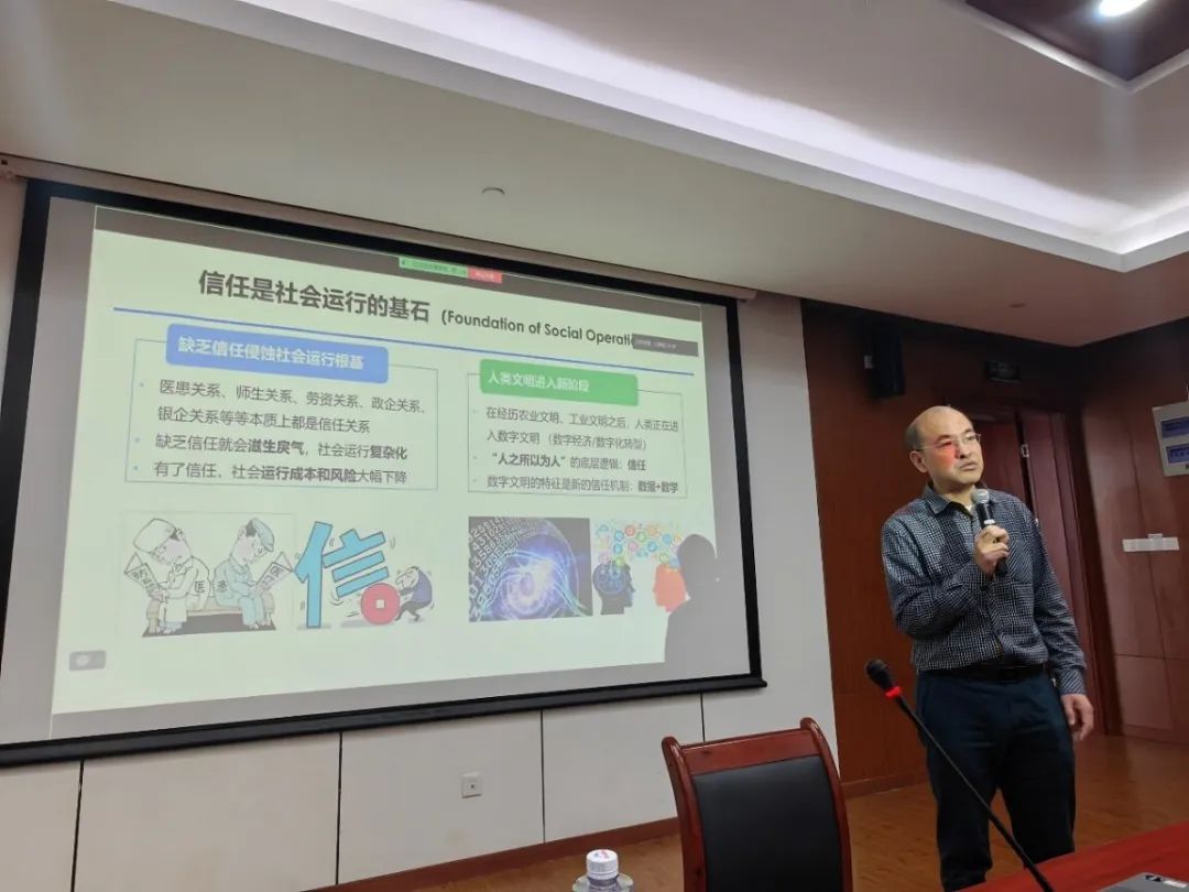 华东师范大学金澈清教授作题为《区块链赋能数据要素流通》报告。首先,基于国家和上海市地方战略,指出数据已成为新时代的重要能源,在推动社会进步和经济发展方面扮演着重要角色以及数据作为第五生产要素的重要性。其次,指出区块链技术在处理数据流通过程中面临着安全与隐私保护、数据存储、交易执行以及共识协议等方面的挑战,并讲述了在这些领域的科研进展。最后,提出区块链技术在实现数据要素流通方面的巨大潜力。报告过后,金澈清教授与到场师生针对该领域的研究内容进行了深刻的互动交流。三位专家的报告内容丰富,深入浅出,让人受益匪浅。三位专家的精彩报告不仅拓展了听众的学术视野,也让大家更加了解了相关领域的前沿技术和最新研究动态。本次CCF走进上海电力大学学术交流活动为师生们提供了与学术界相关领域专家面对面学习交流的机会,促进了各兄弟院校之间的合作与交流,更是作为本校与CCF以及CFF数据库专委进一步深入合作的桥梁,为数据驱动的安全与智能应用相关研究提供了宝贵的科研思路和研究方法。参会师生与讲者交流