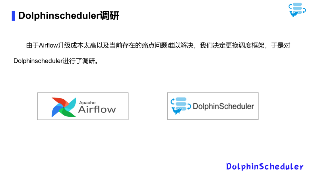 综合考虑后,我们决定更换调度框架,选择了Apache DolphinScheduler。其多Worker多Master的高可用架构,简易的开发方式,多租户支持等特性是我们采用它的主要原因。