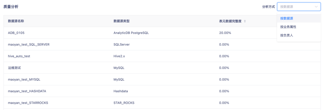 负责人需要根据安排完整地维护缺失的元数据信息,且所有参与维护人员均可给该数据资产打上自定义标签,方便快速按照标签分类查询数据资产信息。管理者可定期统计元数据完整性,追踪元数据维护进展,可根据多种维度如数据源、责任人定期进行统计,及时发现问题,督促责任人完善元数据信息。
