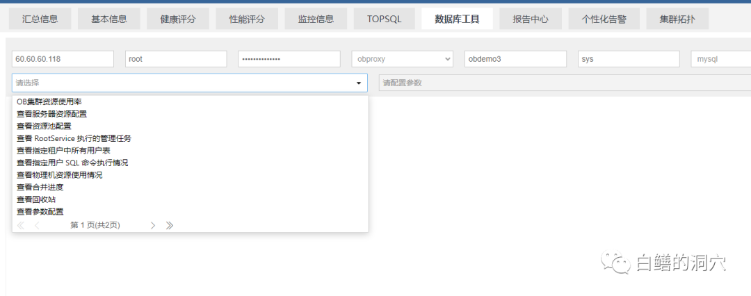 在数据库工具里,也准备预制一些常用查询语句。OB数据库不同版本(目前我们支持3.x/4.x)和不同租户之间数据字典表存在一定的差异。