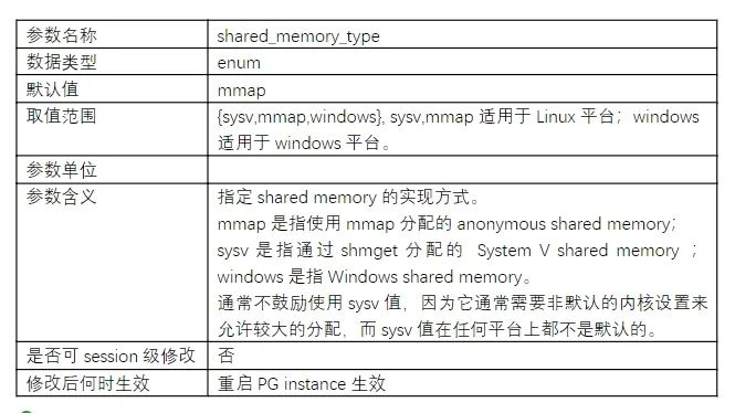 PostgreSQL共享内容配置参数说明: