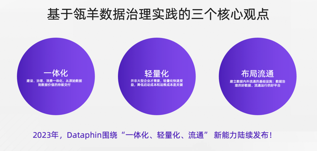 基于瓴羊多年的实践经验,瓴羊Dataphin升级了数据治理新能力,即:一体化、轻量化和布局流通。