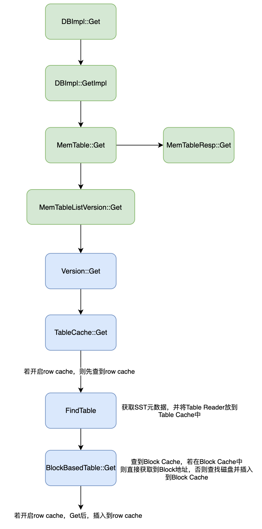 同样地,还有读取流程,RocksDB 的读取流程如下: