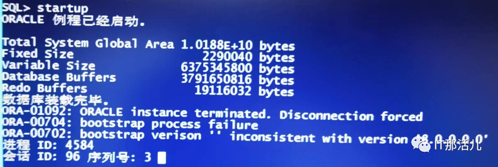 数据库当前是关闭状态,使用startup到open状态时报错,当数据库在mount状态下时可以进行10046追踪设置,查看数据库启动时读取的文件信息。