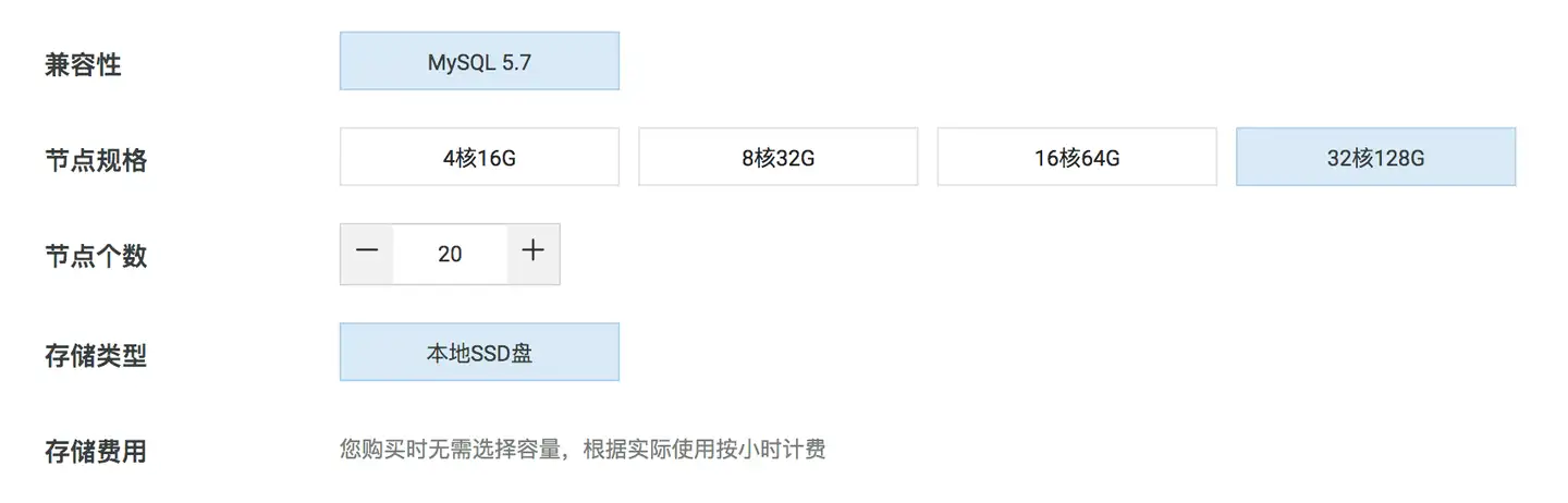- 切换PolarDB-X 2.0的Tab页之后,进入产品购买页面 (选择节点规格 和 节点数量)