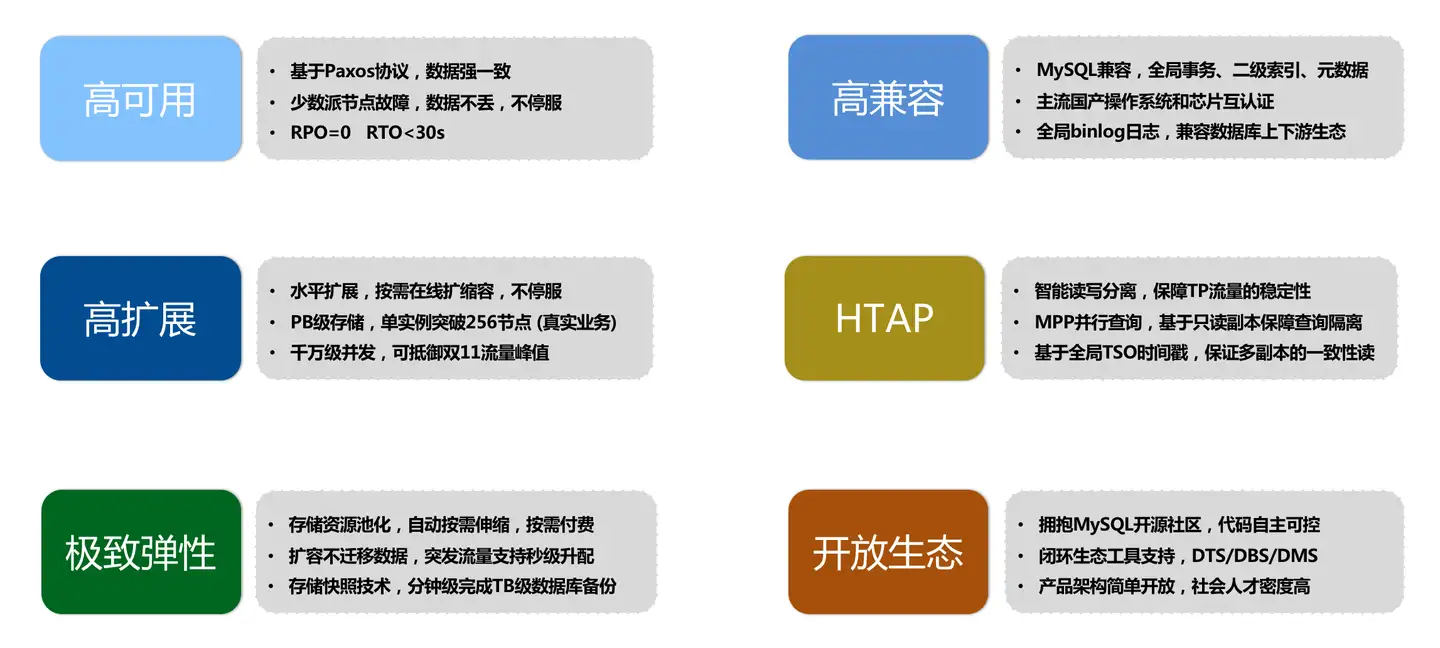 PolarDB-X 是由阿里巴巴自主研发的云原生分布式数据库,是一款基于云架构理念,并同时支持在线事务处理与在线分析处理 (Hybrid Transactional and Analytical Processing, HTAP)的融合型分布式数据库产品,具备金融级数据高可用、分布式水平扩展、混合负载、低成本存储和极致弹性等能力,坚定以兼容MySQL开源生态构建分布式能力。专注解决海量数据存储、超高并发吞吐、大表瓶颈以及复杂计算效率等数据库瓶颈难题,真正历经了各届天猫双11及阿里云各行业客户业务的考验,助力企业加速完成业务数字化转型。