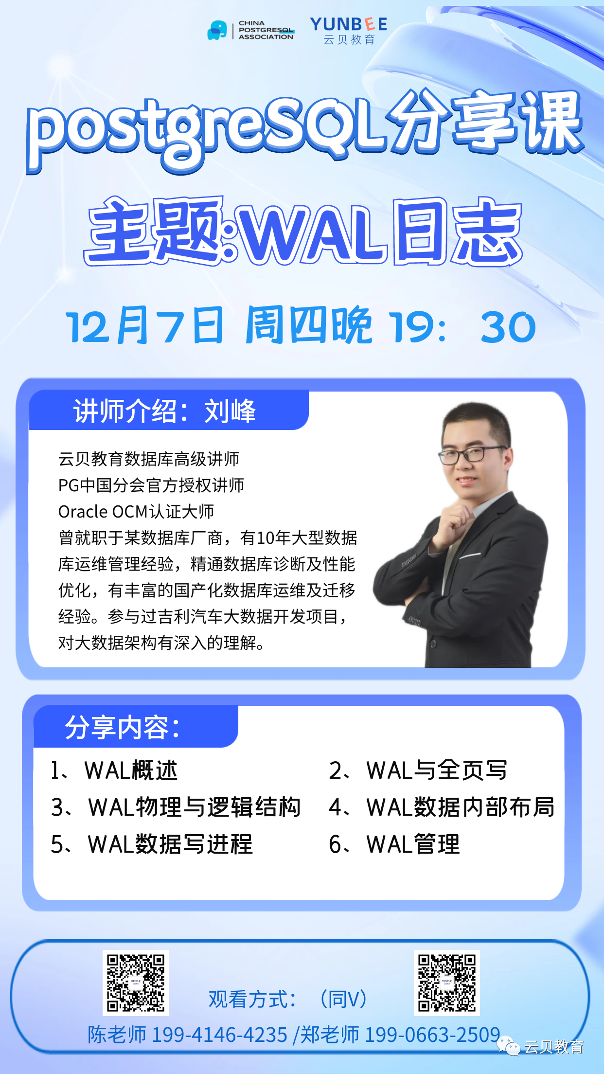 云贝教育 |【分享课】12月7日周四PostgreSQL分享主题:WAL日志