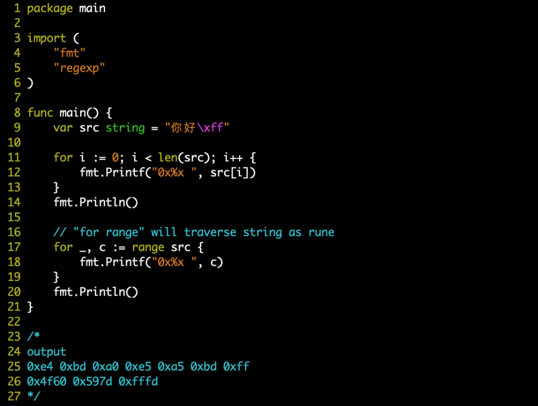 rune进行比较,我们传入的 UTF-8 字符串将被正确通过 UTF-8 解码,可以正确进行匹配。