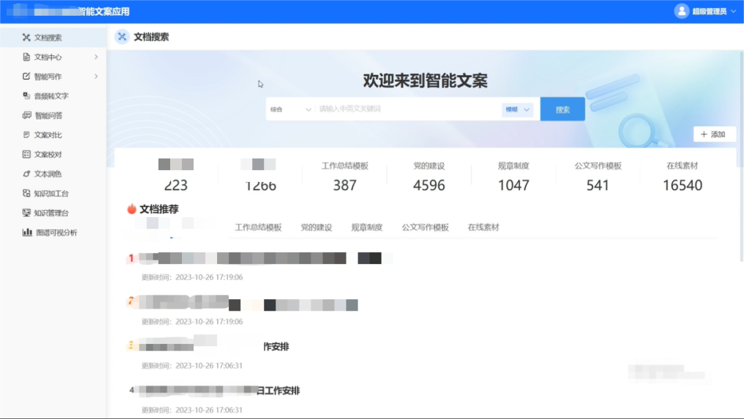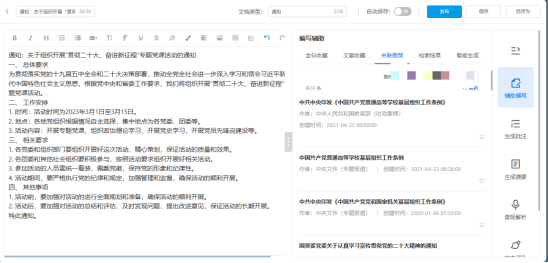 以某研究院应用国双智能文案系统为例,其功能实现由平台产品所提供的智能应用能力和底层文档的自动化加工能力复合大语言模型构成。智能文案写作部分的能力不仅包括了语音转写、文案校对、文本润色、文案辅助编写等通用常见的智能化功能,同时能够借助符合业务逻辑的底层知识管理、加工等平台能力,在垂类行业知识库的构建基础上,精准适配于科研语境,实现符合特定行业及领域的文书创作风格及书写要求,提供更符合专业领域科研人员需求的使用体验。