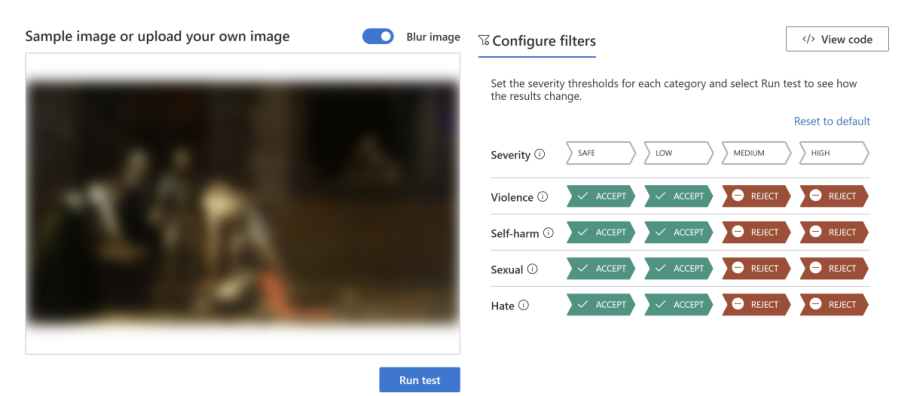 ■ 借助 Azure AI Content Safety 的图像审核工具,客户可以轻松运行图像检测,以确保其符合内容标准。