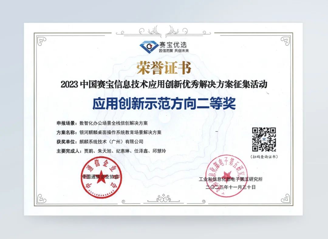 目前,银河麒麟桌面操作系统(教育版)V10已支撑电子教室、智慧校园、人工智能实验室以及实训基地等多种场景,并凭借在全国多地教育信息化建设中的成功应用,荣获了工信部电子五所颁发的优秀解决方案应用创新示范方向二等奖。