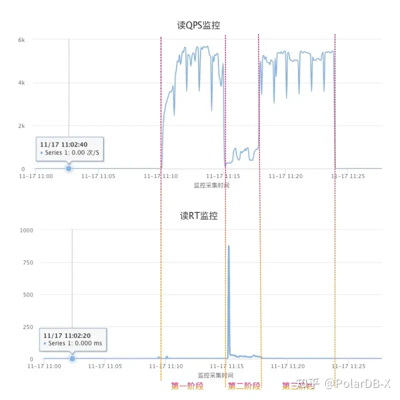 接着对PolarDB-X实例进行实验操作,操作过程由三个阶段组成:核心业务流量访问、边缘业务流量访问、开启SQL限流。