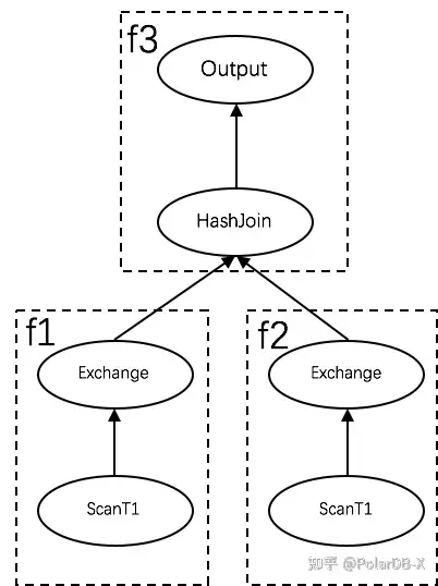 - 如果先调度f3和f2的话,这个时候假设集群没有调度资源,则f1不能迟迟调度起来。而HashJoin的逻辑就是需要先构建buildTable,这里f1刚好是build table部分。最终会导致执行死锁: f1 在等待f3和f2的计算资源释放,而f2和f3又在等待f1构建完buildTable。