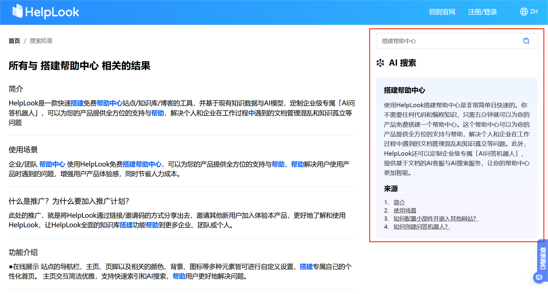 HelpLook集成了ChatGPT 4.0,在线帮助中心的搜索结果不仅提供基于关键词的搜索结果,还可以提供更准确、更符合用户需求的AI搜索结果,从而更好地满足用户的需求。
