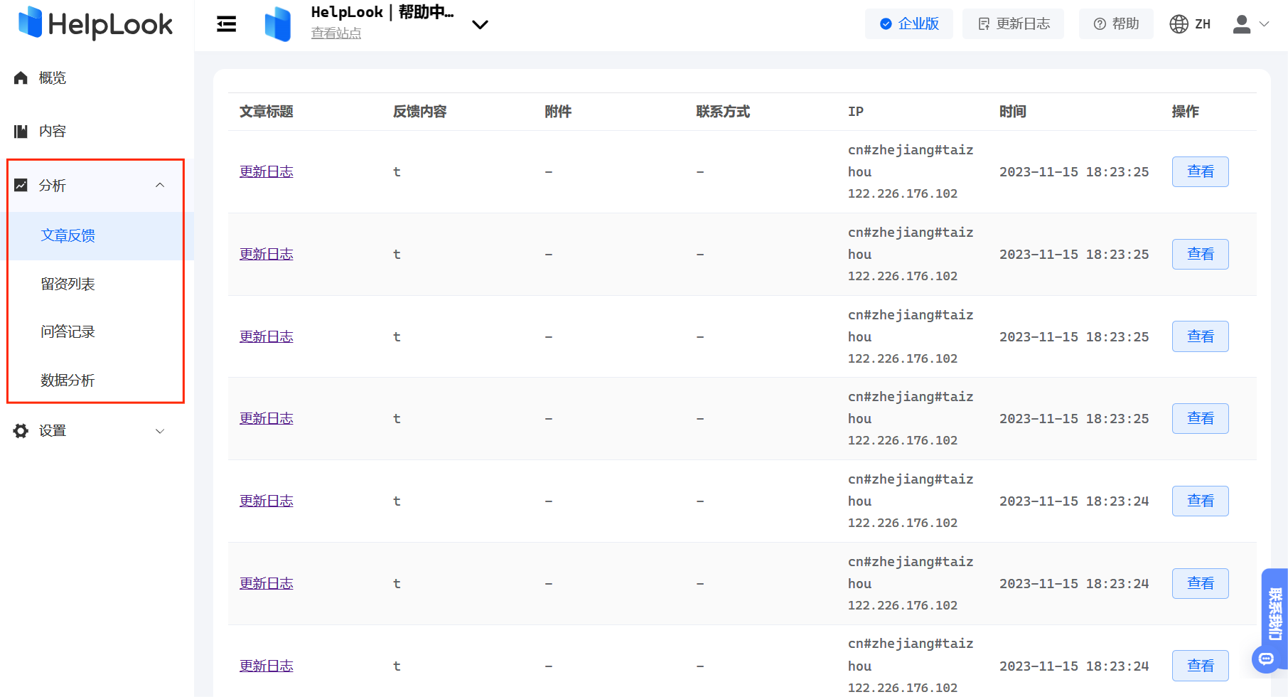 企业应该定期收集用户反馈,以便及时了解用户的需求和问题。对于用户反馈的问题和建议,要及时响应和处理。HelpLook可以对用户的行为进行记录和分析,您在后台查看用户的反馈,以更好地帮助用户并及时解决问题。