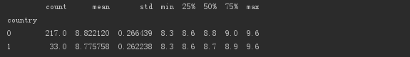 研究电影评分受国家的影响是否显著(之前分析的结论是没什么影响)。