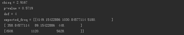 # chi2_contingency:卡方检验,chisq:卡方统计量值,expected_freq:期望频数