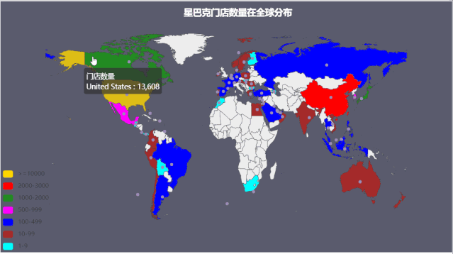 title_opts=opts.TitleOpts(title="星巴克门店数量在全球分布", pos_left='40%', pos_top='10'), # 调整title位置
