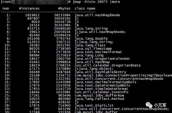 jmap -histo |more