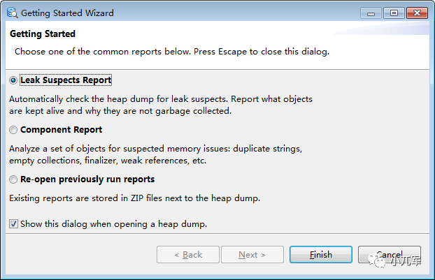 2. 选择Leak Suspects Report(泄露嫌疑报告),进入到主界面,