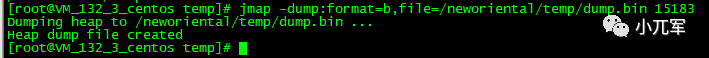 jmap -dump:format=b,file=/neworiental/temp/dump.bin 15183