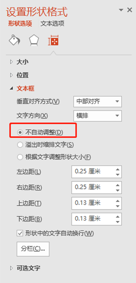选择文本框右键"设置形状格式",勾选"不自动调整",
