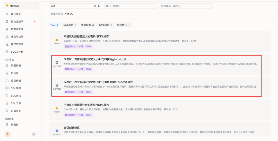 SQLE 已提供了大表 DDL 工具,目前需要在规则模板中手动开启,当前已考虑优化该功能的展示。