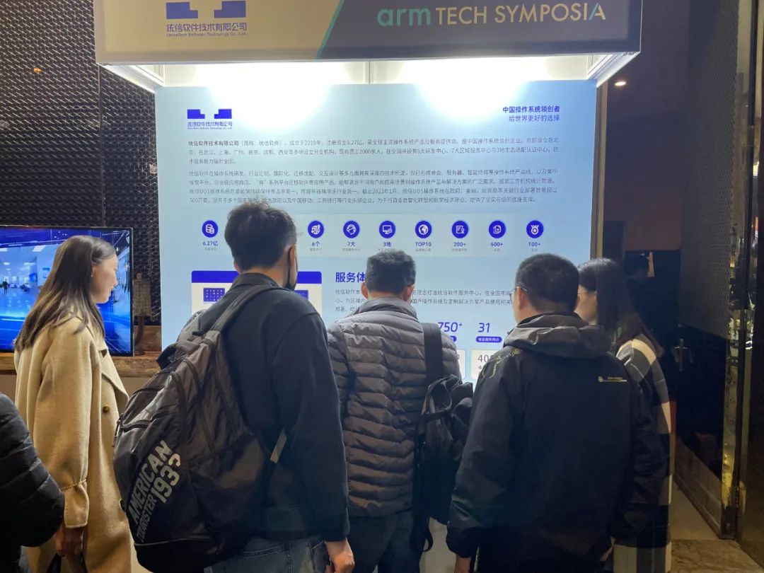 在此次大会上,统信软件向与会嘉宾展示了基于Arm架构的最新操作系统产品,涵盖桌面、服务器等多个领域,吸引了众多行业伙伴、参会嘉宾的驻足参观、交流。