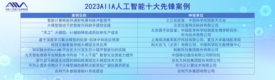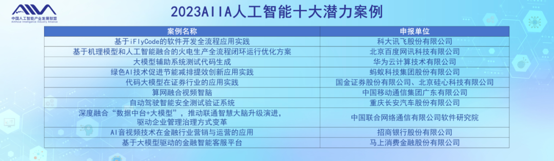 会上,联盟正式发布了AIIA人工智能十大先锋应用案例和十大潜力应用案例。