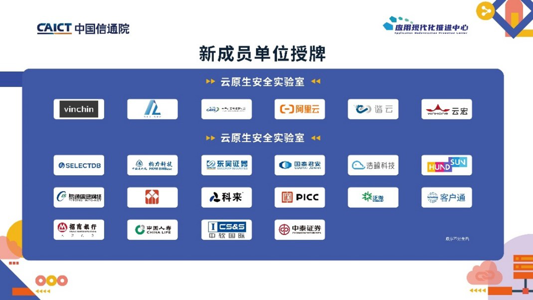 2023年下半年,云计算开源产业联盟下有更多的单位参与到云原生领域研究工作中,其中云计算开源产业联盟-云原生安全实验室新增单位6家,云计算开源产业联盟-应用现代化推进中心新增单位16家。
