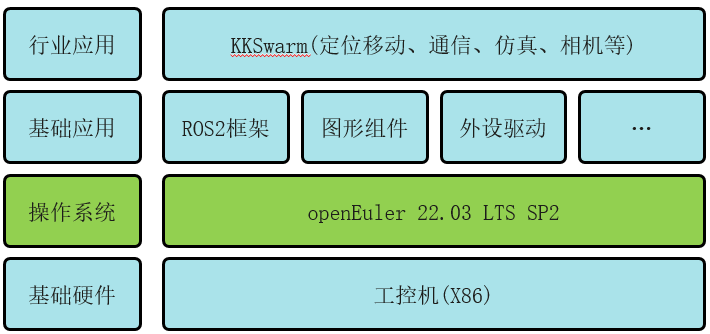 为了响应国家科技自主创新战略,加强信息安全建设,易科实验室和欧拉社区联系对 KKSwarm 平台进行操作系统改造,将原来部署在机器人平台工控机上的 Ubuntu 操作系统替换成基于欧拉社区的 openEuler Embedded 操作系统。