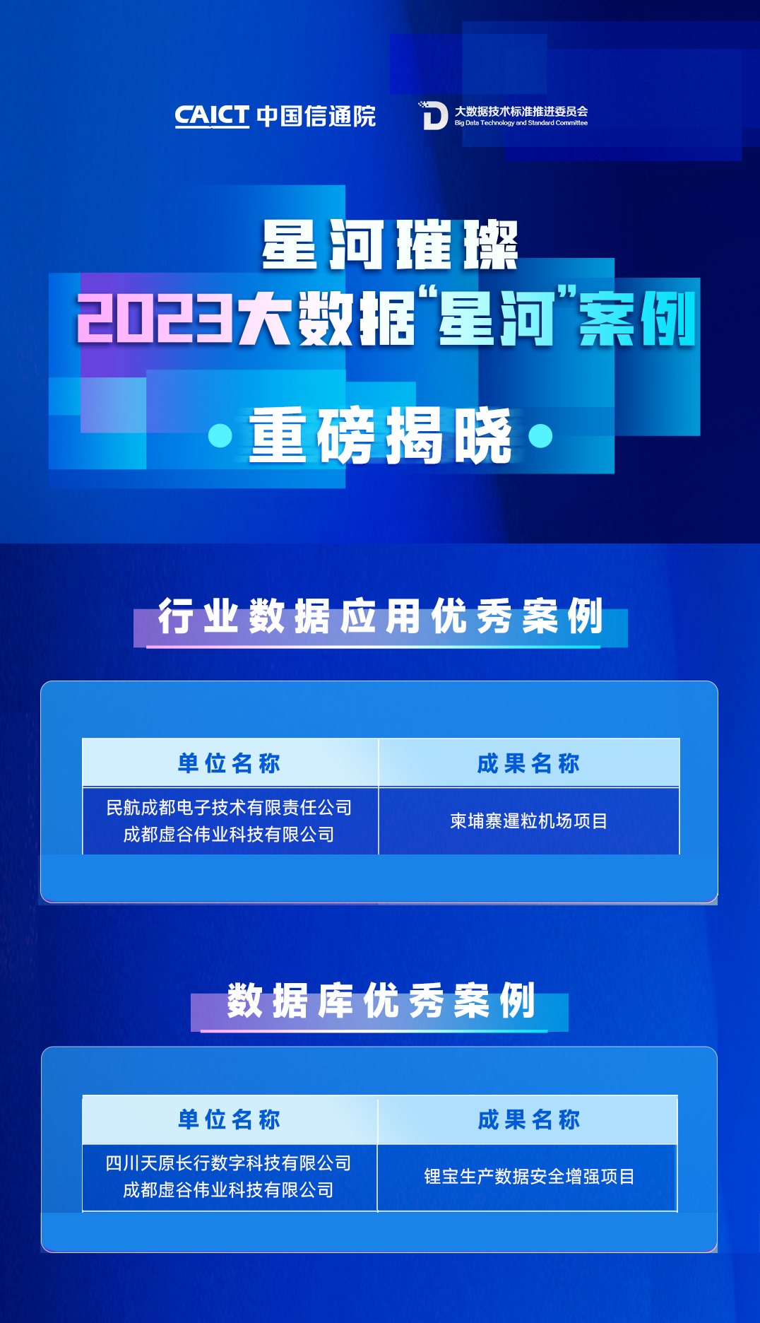 虚谷数据库与民航电子联合申报的《柬埔寨暹粒机场项目》,与天原长行联合申报的《锂宝生产数据安全增强项目》分别荣获"行业数据应用优秀案例"及"数据库优秀案例”两大荣誉!