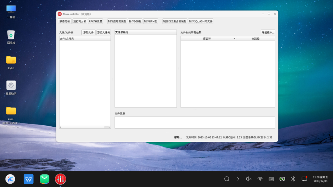 麒麟软件创新推出的可视化安装包制作工具MakeInstaller(中文简称“星星助手”),可助您彻底告别使用命令行安装软件包,提高您的易用性体验;也可助开发人员、运维人员实现可视化依赖分析、制作可视化安装包/升级包等,极大提高开发和运维效率。