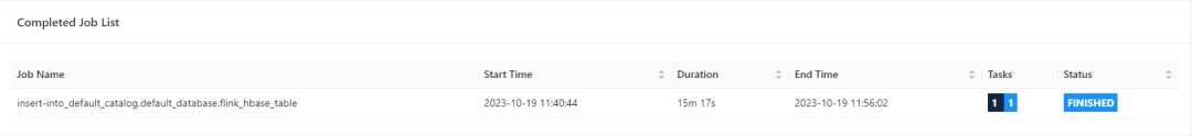 需要提前建好hbase表;如果没有对应的hbase表,flink写hbase任务会显示finished,没有异常,但是并没有自动创建对应的hbase表