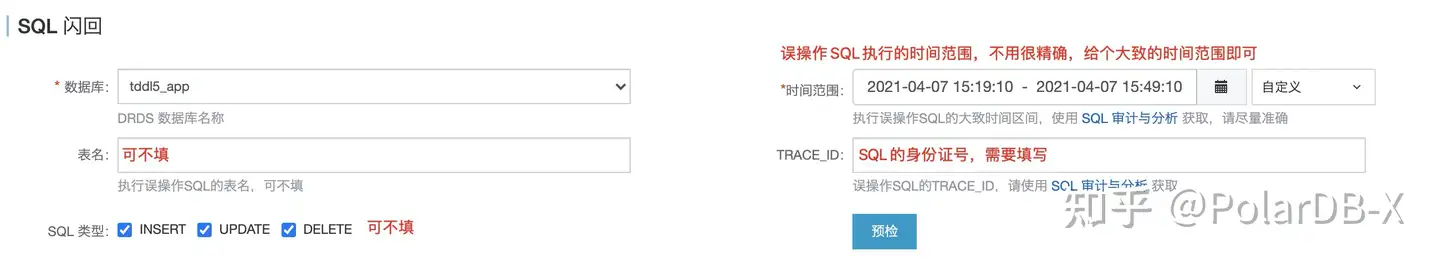 2. SQL 闪回页面填写误操作 SQL 执行的大致时间范围和TraceID,提交 SQL 闪回任务即可。