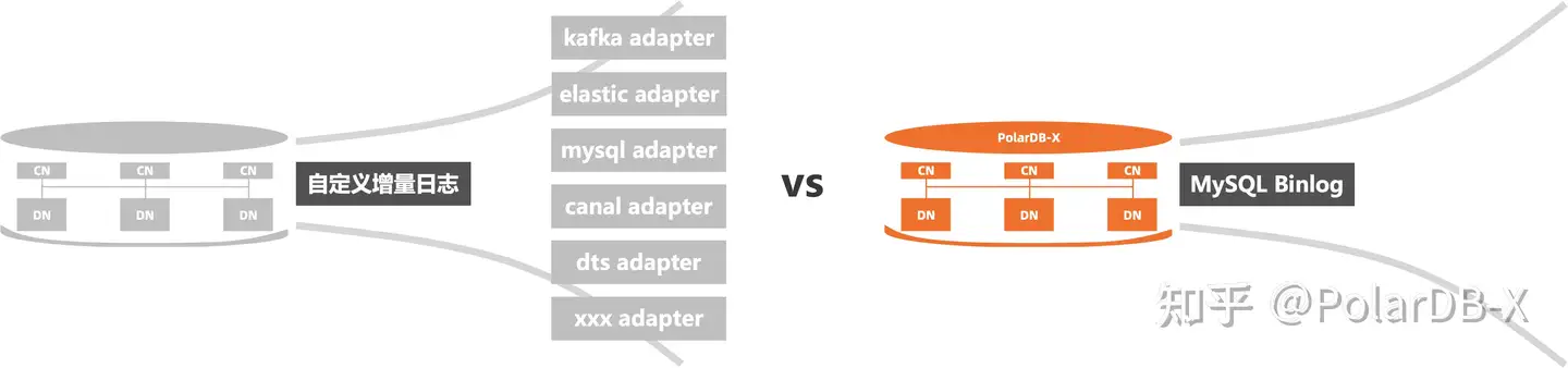面对这些问题,分布式数据库的 CDC 能力需要在实现难度、支持特性、易用性等方面做 trade-off。通常来说,给下游提供多个队列、不保障事务完整性仅提供最终一致性、提供自定义格式的增量日志是一种较易实现的方案,但该方案会对下游消费提出更高的要求,比如要开发相应的消费代码或工具、需要考虑多个队列的协同问题等。一种体验更友好的方式是,通过提供与 MySQL Binlog 完全一致体验的 CDC 能力,让下游可以像消费 MySQL Binlog 一样透明的消费分布式数据库的增量变更,从而极大降低数据同步链路的搭建成本,这也是 PolarDB-X 采用的方案,我们称为全局 Binlog。