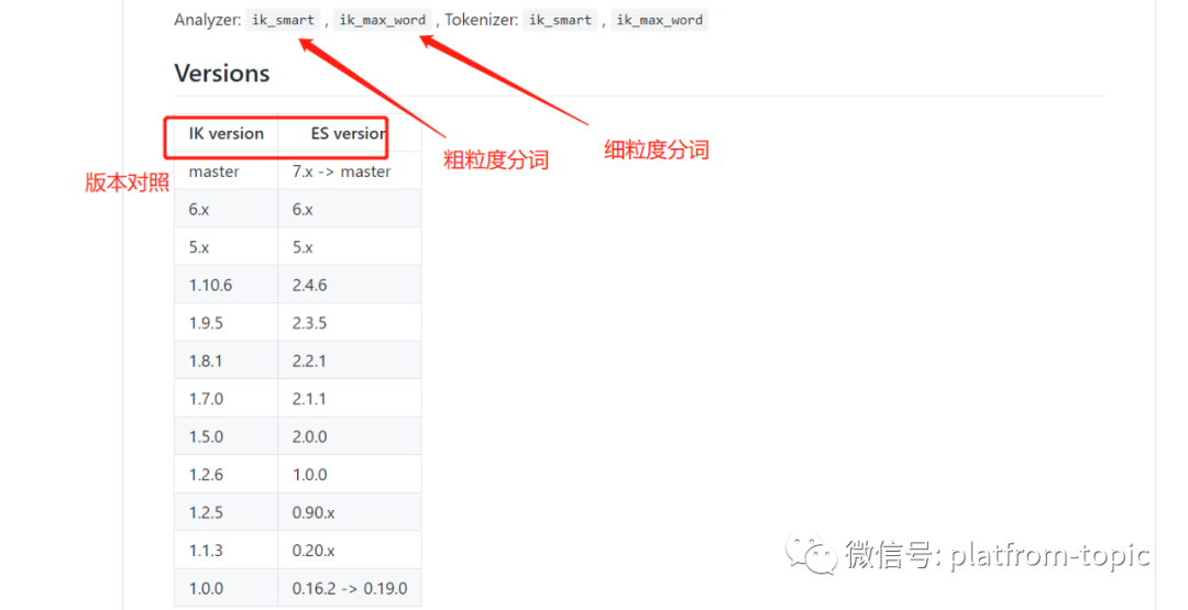 我们先安装好elasticsearch,然后安装IK分词器,我们的es版本和ik的版本可以通过ik分词器的git地址上看到 https://github.com/medcl/elasticsearch-analysis-ik