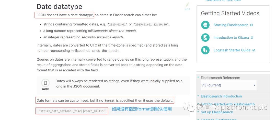 我们来看一下Elasticsearch官网中对存储时间类型的简介