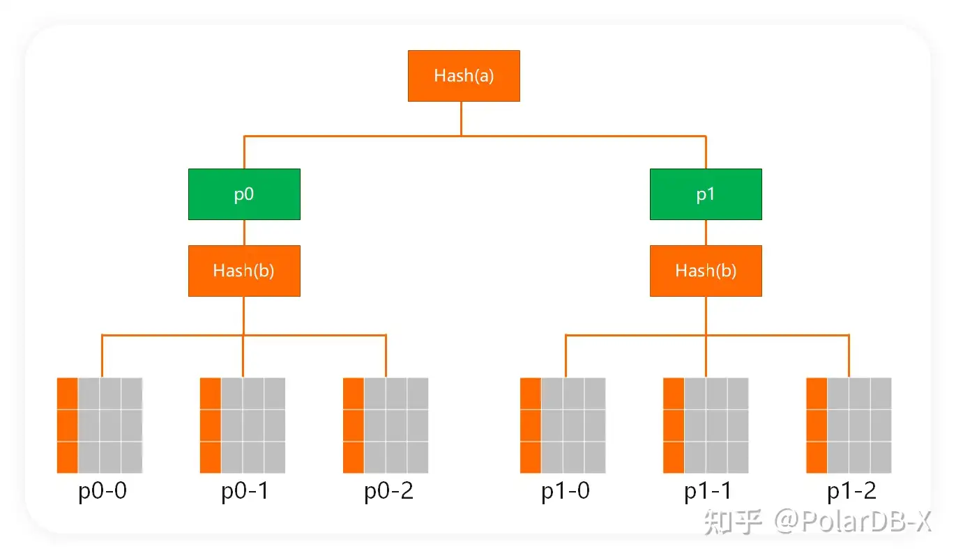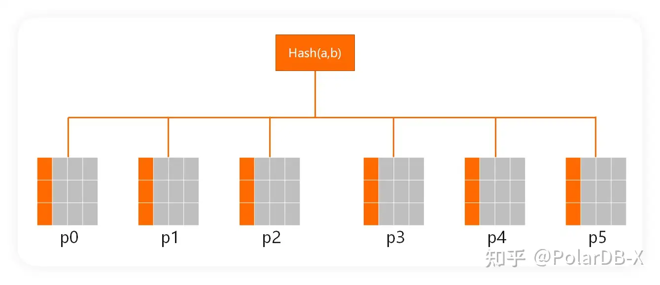 PolarDB-X中的partition by hash(a,b)使用的是方案4,可以很好的支持前缀查询。