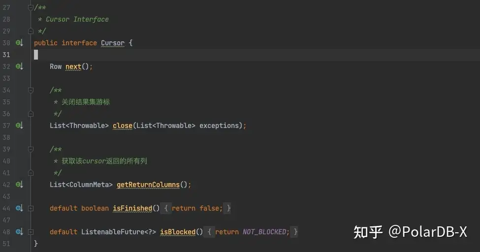 Cursor 链路中,首先根据执行计中的算子找到对应的 handler,代码位置在CommandHandlerFactoryMyImp#getCommandHandler,handler 负责将当前算子转换为一个 Cursor 接口的具体实现,并且嵌套的调用 CommandHandlerFactoryMyImp#getCommandHandler 接口将整个执行计划转换为一颗Cursor 树。ResultSetUtil#resultSetToPacket 中调用 Cursor.next 接口获取全部执行结果返回给用户。