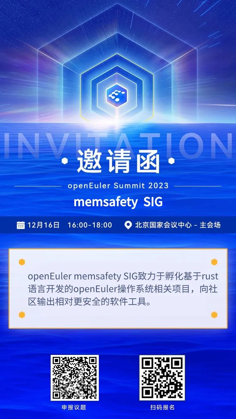 memsafety SIG 和 Base-service SIG将联合举办跨SIG工作会议,深度讨论openEuler社区rust和安全领域的技术问题,欢迎大家报名。