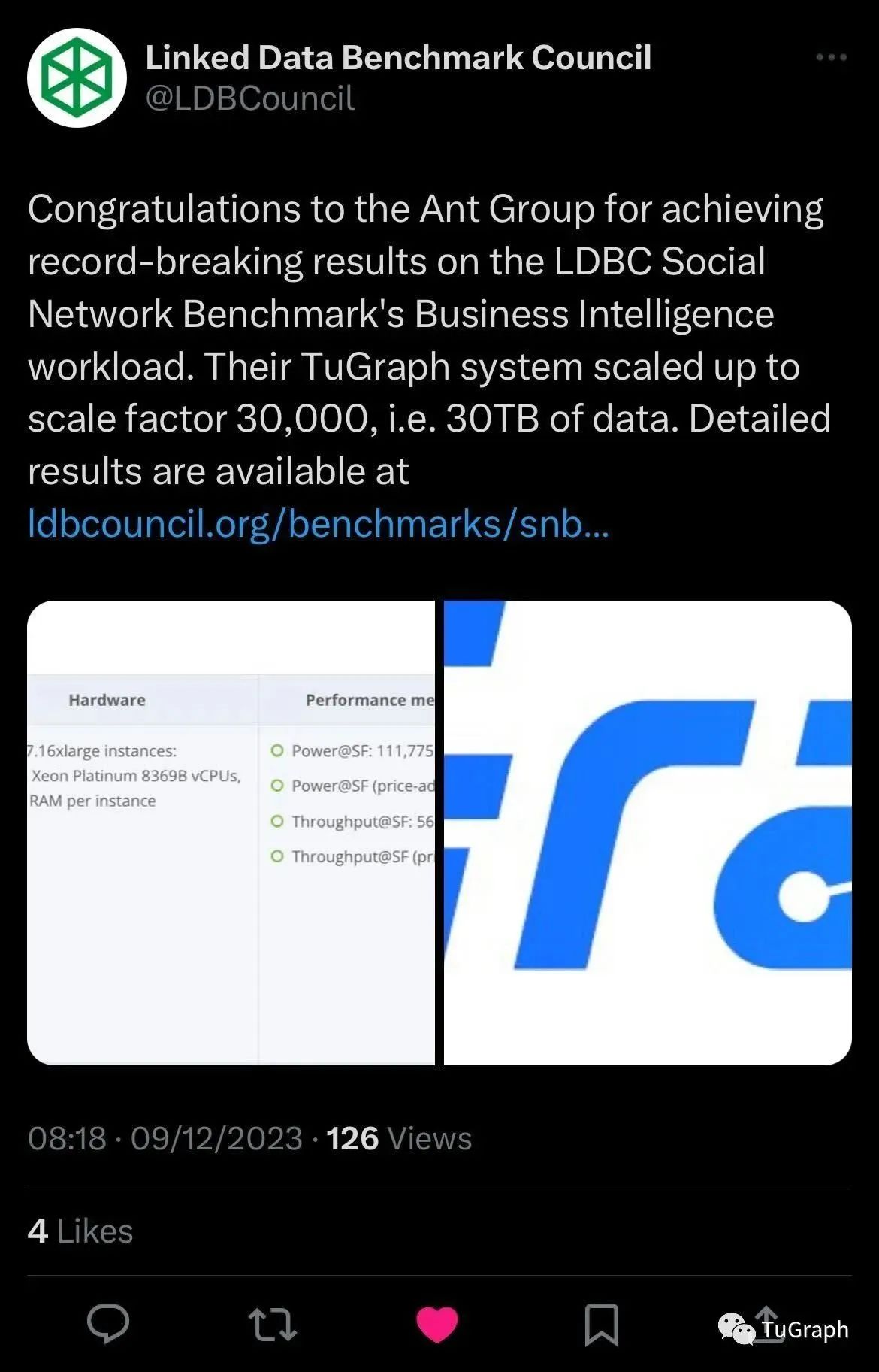 本次测试由LDBC官方审计完成,整个测试环境和测试过程均完整披露于LDBC官网。