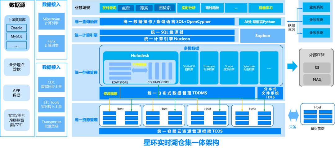 基于高性能存储格式Holodesk,只需一种存储格式即可同时满足湖仓集的数据接入、数仓加工和高性能数据分析,降低数据存储冗余,简化数据加工链路,提升业务时效性。同时,基于多种模型数据统一存储管理(11 种数据模型)、统一计算能力、统一接口,实现了数据跨模型的交互能力,帮助用户快速实现复杂业务,加速业务创新。